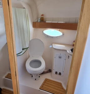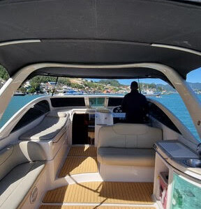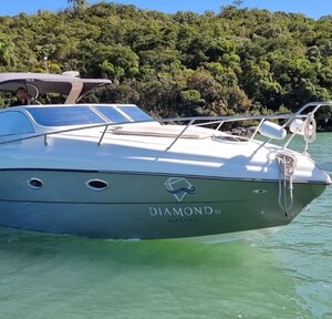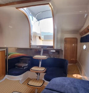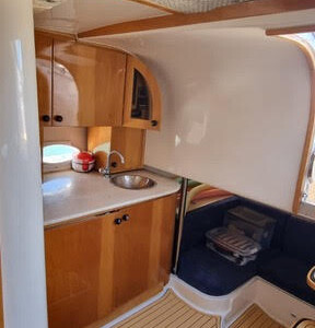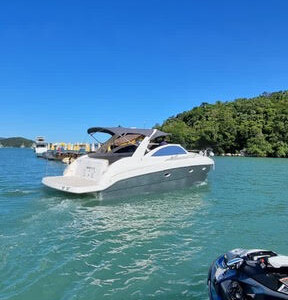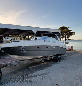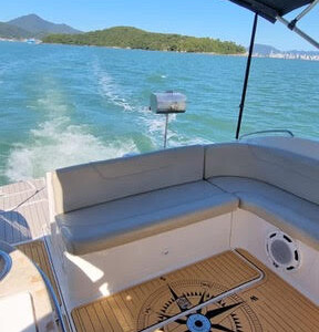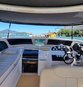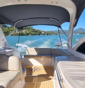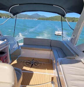 Cimitarra 34 pés, conforto para até 12 tripulantes, comporta 6 pessoas para dormir, com 3 camas.